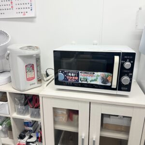 施設内にはレンジ1台とポット1台・各フロアに洗い場があります。