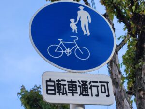 またここは歩道だから車道走らないと…と思っていてふと歩道の入り口の標識見ると自転車マークと歩行者マークが書いてあり、自転車通ってもいいんだということで結局いつも通りのコースで走ることができるとわかりました。